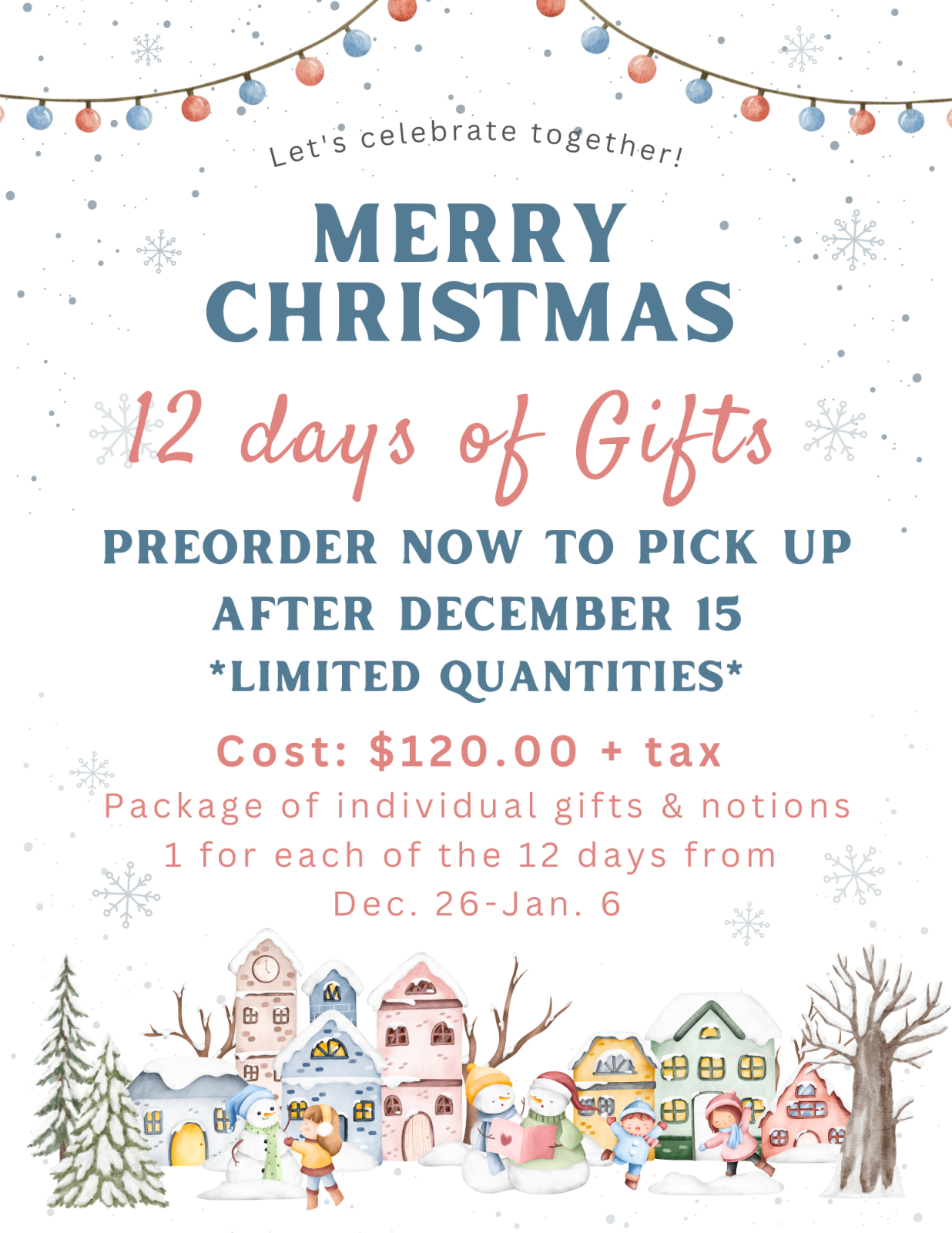 There are 12 fantastic gifts to open-one each day from December 26 to January 6 all put together in a package.